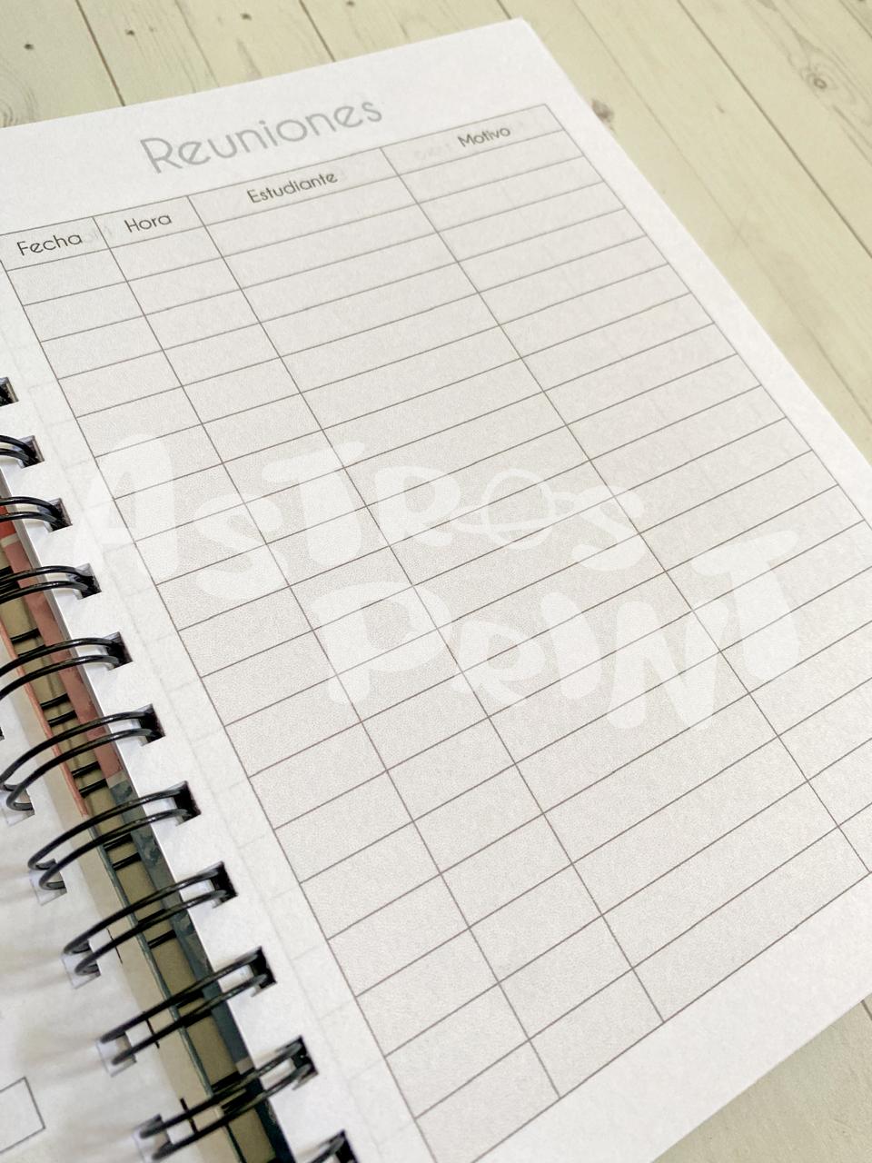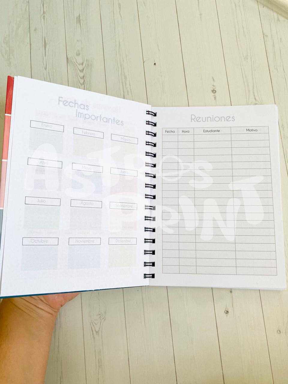 Planificá tu año escolar con una agenda diseñada especialmente para docentes. Con un formato práctico y funcional, te permitirá organizar horarios, reuniones, fechas importantes y notas clave en un solo lugar.