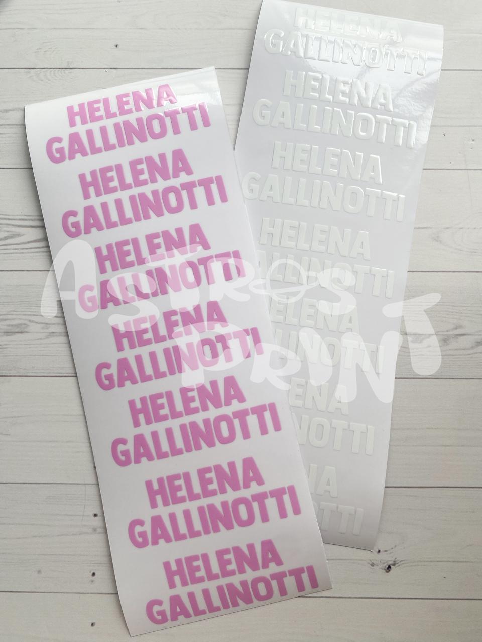 Medida aproximada por etiqueta: 3cm de alto, el ancho es determinado por la longitud de cada nombre y apellido.