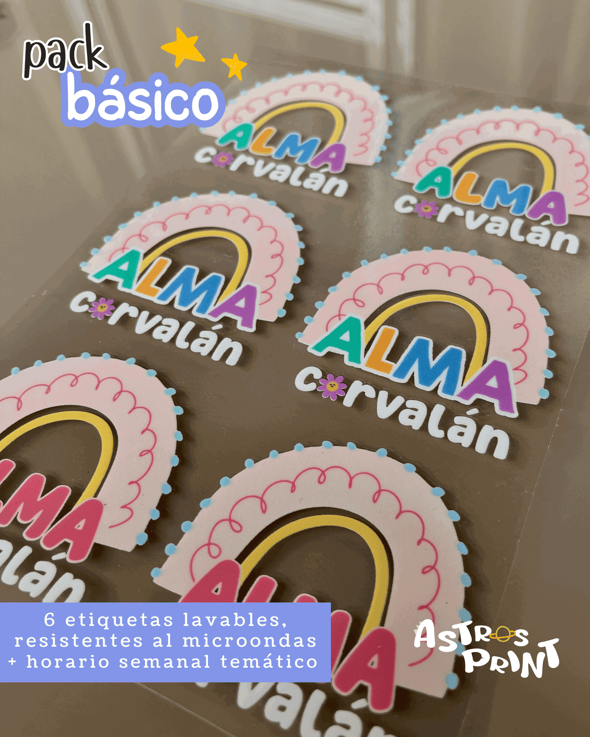 ✔ 6 etiquetas lavables - CON DIBUJO/TEMÁTICA A ELECCIÓN